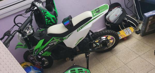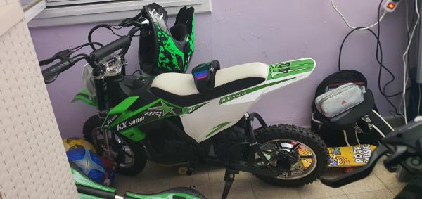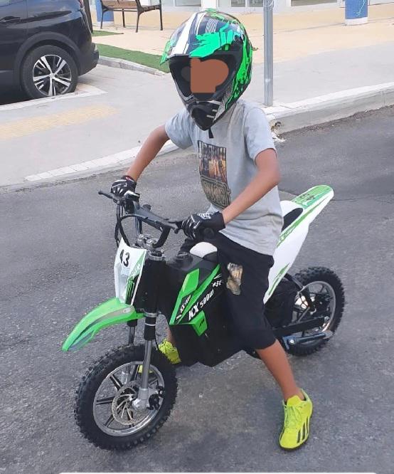 אופנוע שטח לילדים נוסע 15 אפשרות לפתוח לעד 30 קמ"ש, חדש היה בשימוש פעם אחת יש סוללה נוספת, מחזיק המון זמן הסוללה, כולל כל הציוד הנלווה. קסדה מטען כפפות מגן עיניים ופנים.