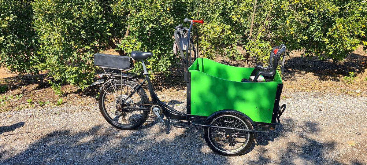 תלת אופן עם ארגז לעד 4 ילדים בעל מנוע עזר חשמלי, יבוא אישי ומשודרג , נדיר ביותר, יחידי בארץ.בעל 2 ספסלים וכיסא תינוק, עם טווח נסיעה של מעל 20 ק"מ תלת אופן עם ארגז חשמלי