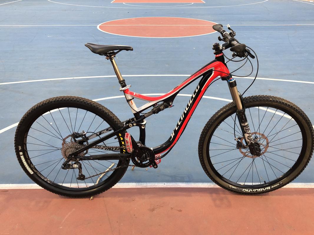 אופני הרים שיכוך מלא 29בולמים אוויר 140 מ״מ FOX FLOAT עם נעילהברקסים Avid דיסק גדול 203 מ״מ לכוח בלימה הילוכים SRAM מוט כסא הדראולי fox 125 מ״מצמיג מקסיס אופניים מאוד נוחות הכול עובד פיקס לגובה 172-188שלדה Large Specialized Stumpjumper 29