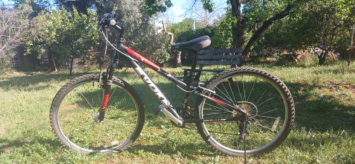 אופני הרים תוצרת EVOKE דגם X-40, גודל גלגל 26 אינץ', 21 הילוכים שימנו, שלדת אלומיניום מידה 14 (קטנה), עברו שיפוץ. מתאימים לנוער מגובה 135 לערך, או למבוגר לא גדל מידות. לעלות ולרכב.