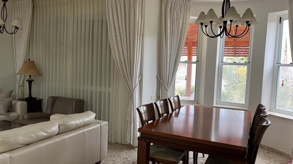 דירה בת 7 חדרים, שמורה ונקיה, גינה גדולה בהשקיה אוטומטית, 2 מרפסות שמש ומרפסת פרגולה, יחידת הורים משופצת, 3 שירותים, חדר שירות, חדר כביסה.