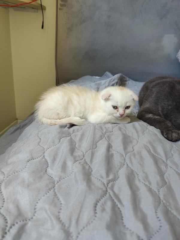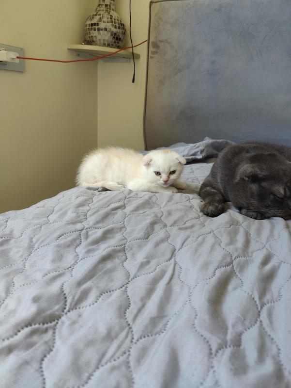גור סקוטי פולד מרגל לאוכל יבש וארגז צריחים .יש תיפול נגד תולעים ופאושים.מעוד חברותי.