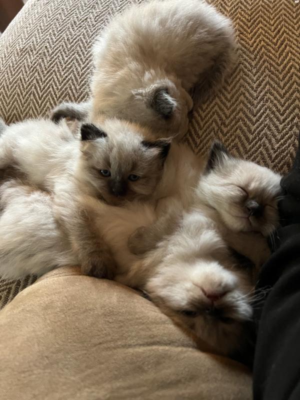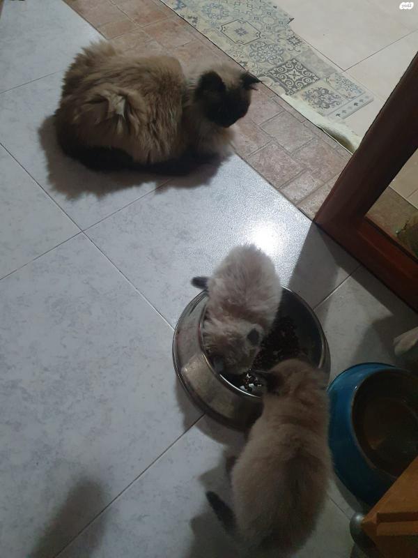 3 חתולים למכירה אמא הימלאיה ו אבא סיאמי נשאר 3 גורים בן חדשים נקב 1 זכר 2