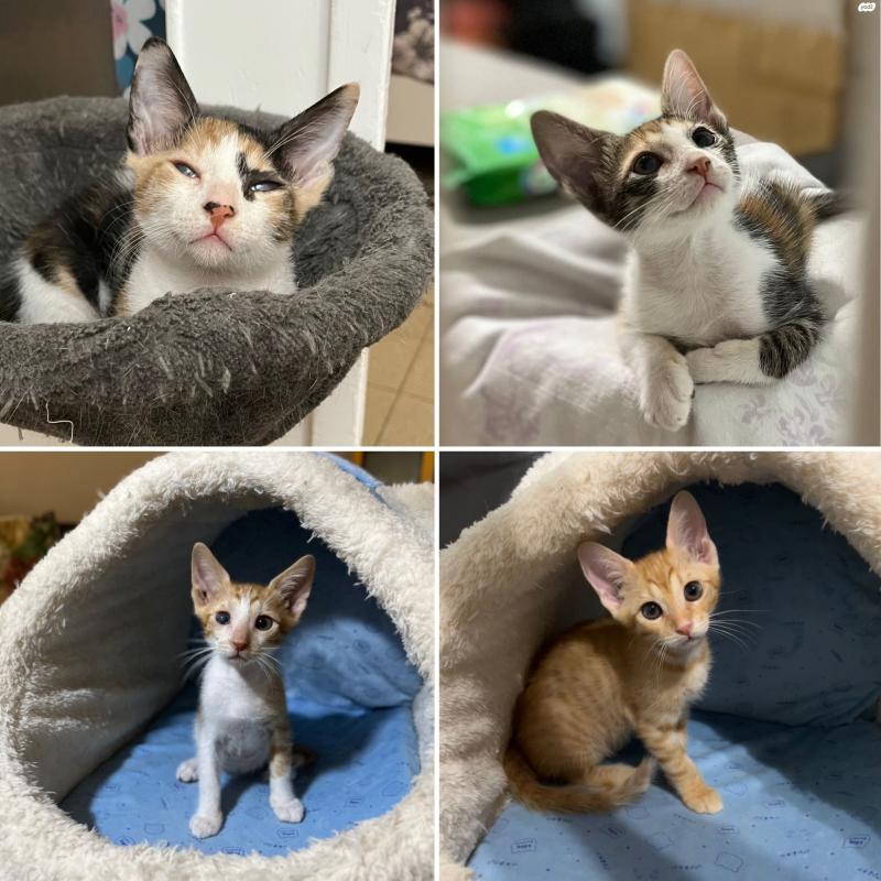 4 גורי חתולים לאימוץ מחיפה, 3 נקבות וזכר בני חודשיים.כולם מתלטפים, מגרגרים, נקיים מפרעושים, אוכלים אוכל יבש ורגילים לצרכים בארגז.מלידה הם תמיד אוכלים, ישנים ומשחקים ביחד לכן יותר מאשמח לתת אותם בזוגות אבל כל אחד ומה שמתאים לו יש לי כבר שני חתולים בבית ולא אוכל להחזיק בהם עוד הרבה ואאלץ לשחרר אותם לרחוב בקרוב, אני ממש אודה אם תוכלו לשתף בפייסבוק ובווטסאפ ותעזרו לי למצוא להם בית חם ואוהב