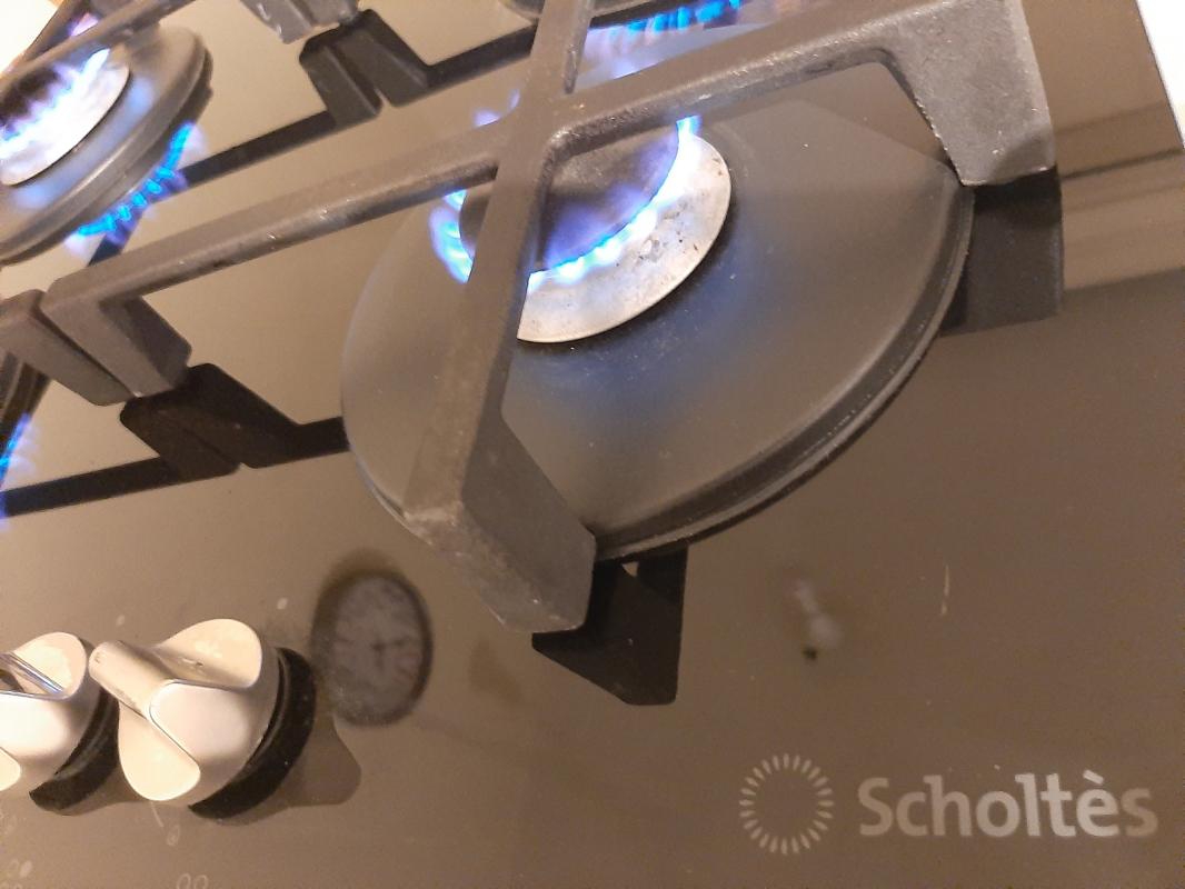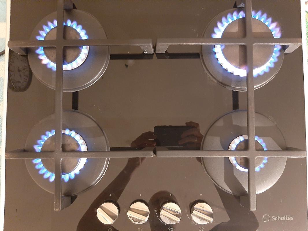 כיריים גז שולטס 4 להבותזכוכית שחורה קלה לניקוי חיישני בטיחות הצתה אלקטרונית מעמד לסירים מברזל יצוק הכל עובד ותקין מידות סטנדרטיות כיריים גז 4 להבות שולטס