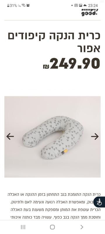כרית הנקה של סימפלי גוד+ סינר הנקה של מיננה (חדש, לא היה בשימוש בכלל) כרית הנקה של סימפלי גוד + סינר