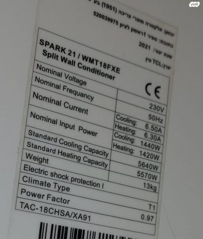 מזגן אלקטרה ספארק 2.5 כ"ס חדש !!!!! עבד שעות בודדותפרטים בטלפו ELECTRA 21