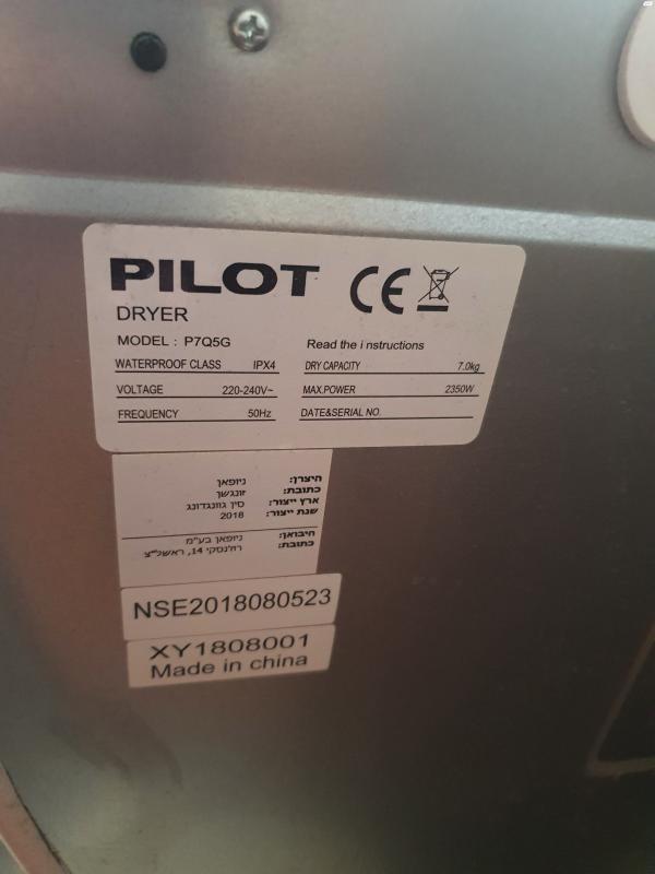 מייבש PILOT פילוט 7 קילו במצב טובלא מתאים לייבוש בגדים בהירים!!משאיר קצת כתמים על הבגד!אולי יש תיקון, אין לי מושג.מצויין לייבוש בגדים כהים בלבד מייבש PILOT פילוט 7 קילו