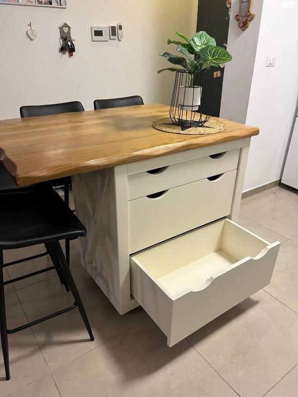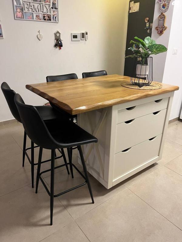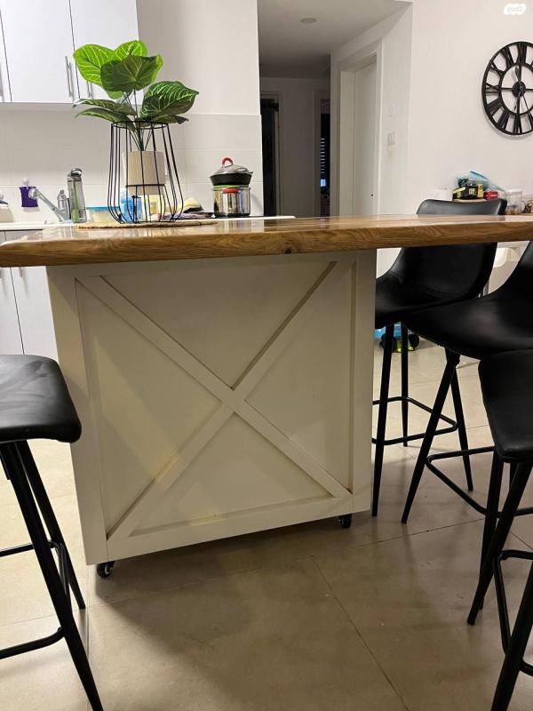 למכירה אי למטבח מדהים במצב מעולה בהזמנה אישית מנגר פרטי בעיצוב כפרי ומיוחדבגודל רוחב 120 ס״מ, עומק 90 ס״מ, גובה 92 ס״מבוצ״ר מעץ מלא האי נייד וניתן להזזה על גלגלים ומכיל 3 מגירות לאיחסון מגירת סכום ועוד 2 מגירות עמוקות!+ 4 כיסאות בר נוחים תואמים בצבע שחור בד דמוי עור מתנגב בקלות.נמכר בצער רב עקב מעבר דירהכל הקודם זוכה! אי למטבח בהזמנה אישית וכיסאות
