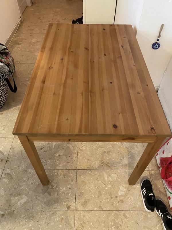 שולחן עץ איקאה מדגם JOKKMOKK במצב משומש-טוב,מידות: עומק: 74.5 ס"מרוחב: 118 ס"מגובה: 73 ס"ממחיר השולחן 249 ש"חניתן לרכוש עם 2 כיסאות לבנים של איקאה מדגם TEODORES במצב ממש כמו חדש- שלא היו בשימוש (מצולמים גם כן ועולים בחנות 195 ש"ח ליחידה), בתוספת של 269 ש"ח ל-2 הכיסאות.שולחן+2 כיסאות= 518 ש"ח שולחן עץ איקאה JOKKMOKK