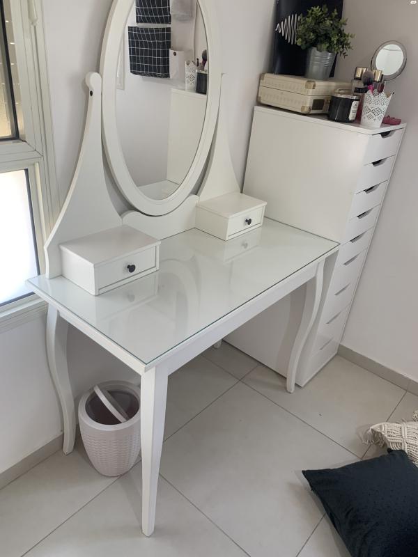 שידת איפור של איקאה עם כיסא במחיר של 550 שח. נקנתה לפני כמה חודשים וכעת אין בה צורך. ממש כמו חדש! שידת איפור