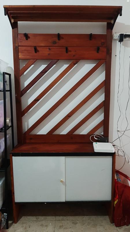 שידת כניסה עם ארון נעליים ומעמד לתליית מעילים.מי שיקח יכול לקבל בחינם גם את הספריה התואמת (מצורפת תמונה).דורש הובלה במדרגות. מידות:רוחב 100עומק 31גובה 201בבקשה לפנות בהודעה שידת כניסה משולבת תליה