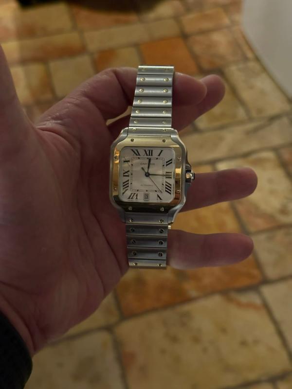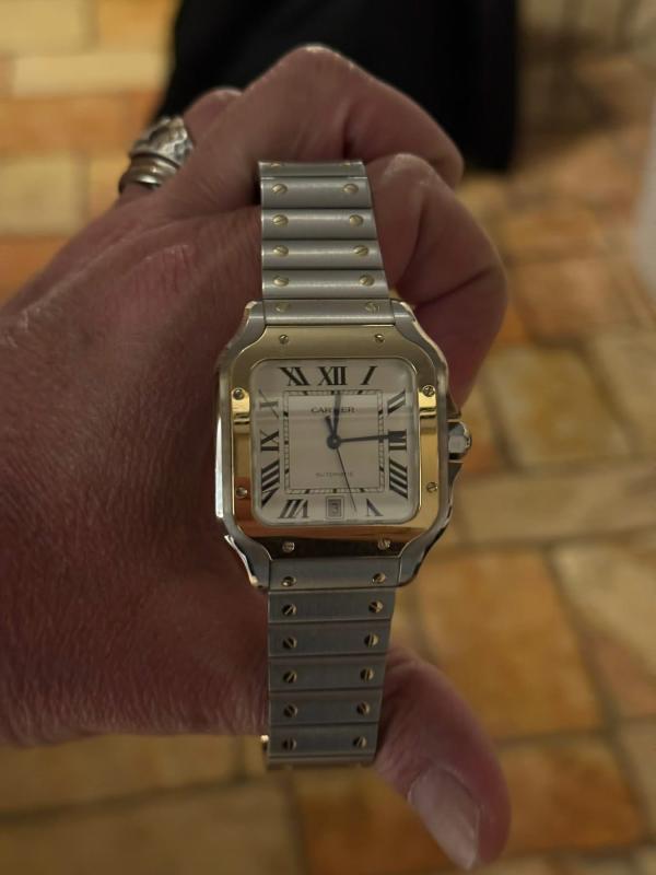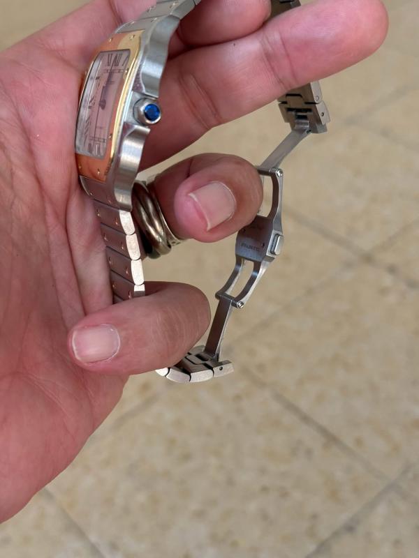 ה SANTOS המודל הגדול, נקנה בפריז בחנות האם של קרטייה. יצירת זהב ופלדה ודגם חד פעמי עם זהב מלוטש ומבריק שאין להשיג כיום. דגם 2024 עם אבן ספיר כחולה אחריות היצרן עד אוקטובר 2031. מספר הסידורי של השעון נמצא גם על השעון, גם על החשבונית וגם באתר קרטייה הרשמי. מחיר בפדני : 55000 שקלים ולא את הדגם הנוכחי כאמורמחיר מחוץ לכל תחרות מפרטי. מודל יחודי ויחיד וחדש. מפרטי לפרטי.34000 ש״ח לרציניים בלבד.