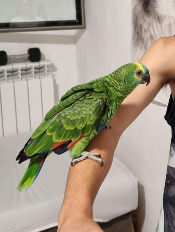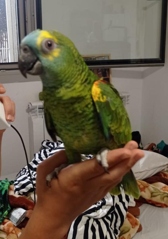 אמזונה בלו פרונט בן שלושה חודשים, גמול על כופתיות פירות וירקות, בדוק מין, האכלת יד ברמה מאוד גבוהה עולה לכל יד, לא נושך בכלל מתאים מאוד לילדים באמת תוכי מושלם צבעוני ויפה עם צהוב ואדום בכנפיים, בעל יכולת דיבור מאוד גבוהה (המדבר הכי טוב לאחר ג'אקו), לעוד תמונות סרטונים ופרטים נוספים שלחו הודעה בוואצפ.