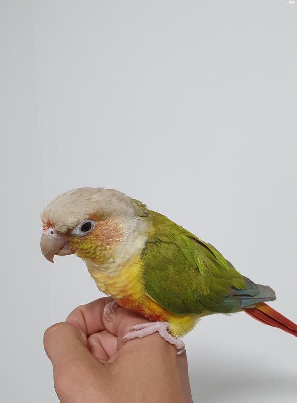 קוניור אננס האכלת יד ברמה גבוהה בן שנה,מטובע,מגיע עם כלוב,מחיר 800,איסוף מחולון