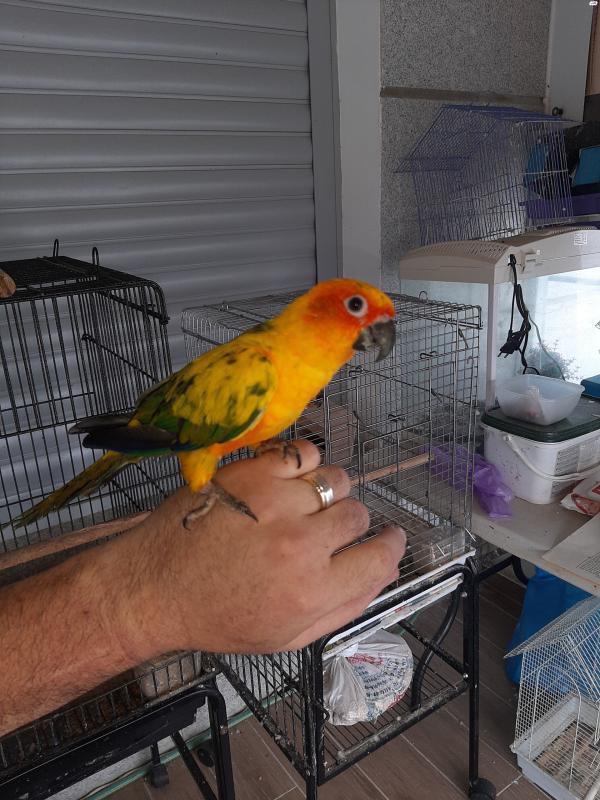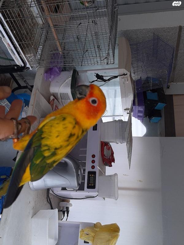 קוניור שמש בגיל חצי שנה, האכלת יד, חביב ולא נושך. אוכל כופתיות ופירות.לא ידוע מין