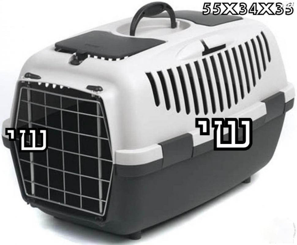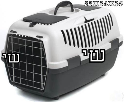 כלוב נשיאה וטיסה מתאים לחתולים כלבים ותוכים במשקל עד 8 ק"ג. בעל שני פתחים הניתנים לסגירה. פתח אחד תא איחסון ופתח ללטף .מידה: 34*35*55 ס"מ. חדש באריזה