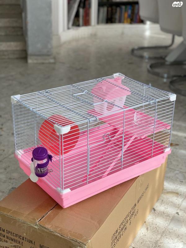 כלוב לאוגרים צבע ורוד כולל קערת אוכל בקבוק למים בית מסתור וגלגל