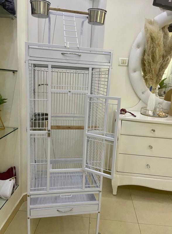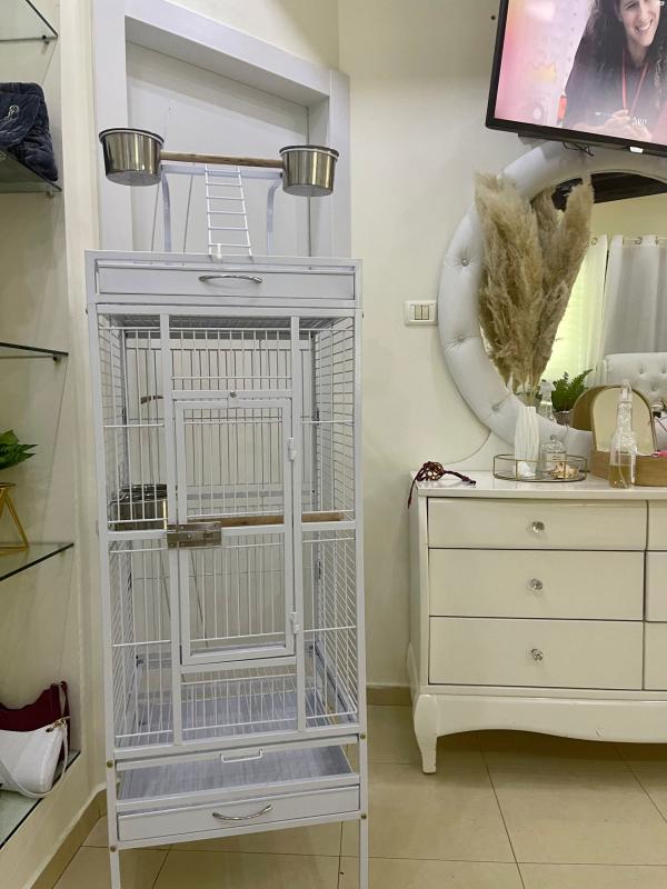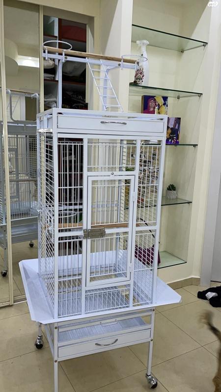 כלוב A10 לתוכים האכלת יד בצבע לבן המרייט.מצבו חדש לחלוטין היה בשימוש חודש בלבד מגיע עם כונס לכלוך,מעמד מעל הכלוב, מגירות ניקוי ו4 קערות נירוסטה