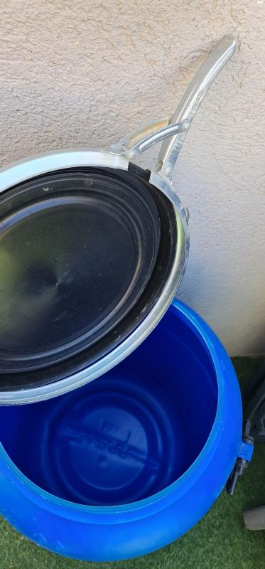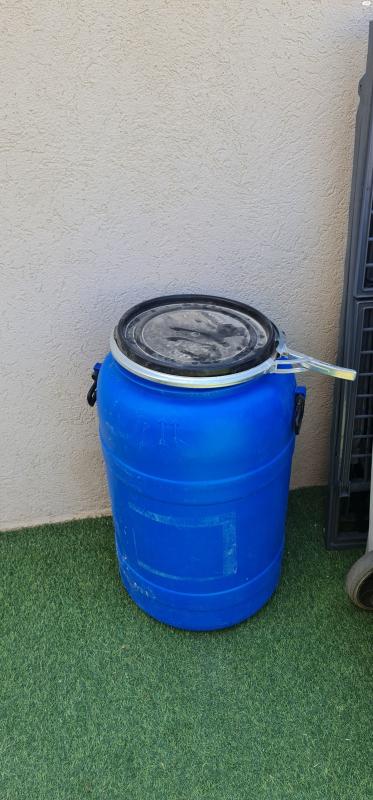 מיכל חדש וחזק פעם אחת השתמשנו. מתאים לאיחסון של תערובות אוכל לכל סוגי בעלי חיים עם שתי ידיות ונעילת המכסה. לא יודע כמה ליטר יש לי מידות: גובה 77 סמ וקוטר 42 סמ. אפשרות החלפה על נקבה כנרית