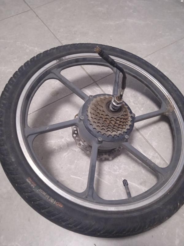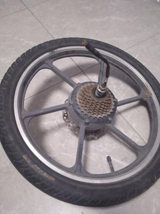 מנוע 36 וולט של אופניים חשמליים שיושב על גלגל מגנזיום עם צמיג ופנימית מנופח מנוע