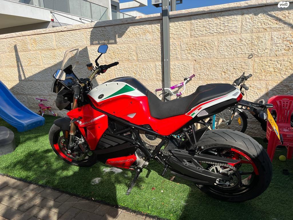 Energica Eva Ribelle Tricolorדגם מיוחד, לדעתי היחיד בארץ. ניתן לראות באתר הרשמי של אנרג?יקה.האופנוע ואולי גם הכל רכב הכי מהיר על הכביש. 2.6 למאה. 7.8 למאתיים.תוספות מקוריות: התנעה ללא מפתח, טנק ?דלק? מקרבון, משקף גבוה, אומים וברגים מושחרים.צמיגים חדשים מקוריים מהחודש. (מאי)אופנוע כזה חדש עולה מעל 155,000.