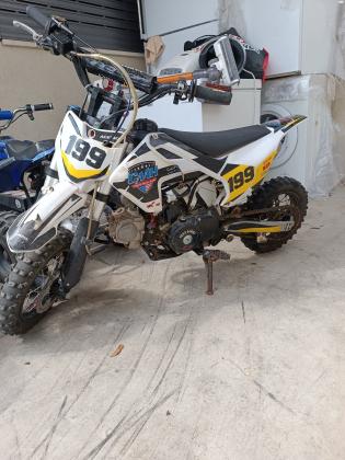 אופנוע שטח מיני בייק לילדים מנוע 110 שנת 2019 מטופל ומתוחזק , מצב מצויין. מנוע 4 פעימות בנזין , אוטומט, סטרטר, ללא קיק.לאחרונה הוחלפו קרבורטור, ידית וכבל גז. מתאים לילדים בגילאים 5-10.