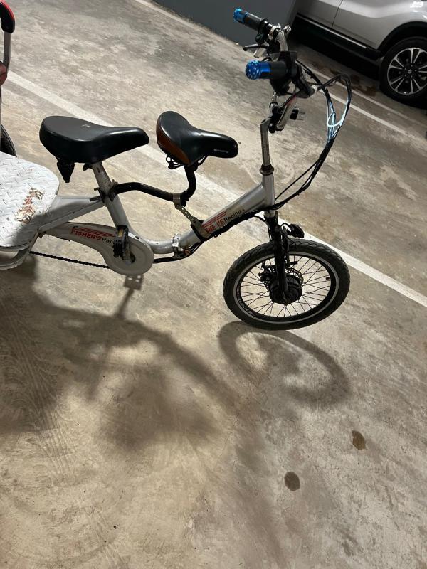 תלת אופן עם ספסל וכסא נוסף להרכבת נוסעים,במצב מצויין הכל תקין ועובדנקנו לפני כשנתיים ב 6000 שקליםנמכרות ב 3,900 עקב חוסר שימוש תלת אופן חשמלי מבית fisher