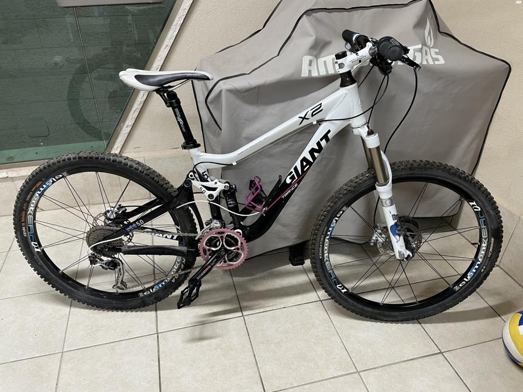 אופני ג׳יאנט שיכוך מלא עם בולמי פוקס נעילה מהכידון לבולם הקידמי הילוכים ובלמים slx של שימנו. פדלים חדשים גלגלים מיוחדים 26 ושילדה small Giant trance x2