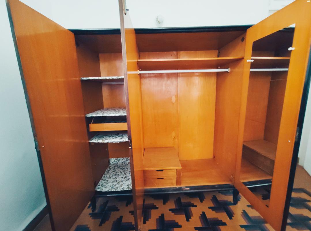 ארון בגדים וינטג' 3 דלתות במצב טוב מאוד, צבע חיצוני חום שוקולד יפה. עומד על רגליים מעוטרות. כולל מקום רב לתלייה, מדפים, מגירות, ומראה פנימית. נמכר עקב מעבר.מידות:גובה - 169 ס''מרוחב - 152.5 ס''מעומק - 59.5 ס''מאיסוף ממסדה, חיפה ארון וינטג? יפה, שלוש דלתות