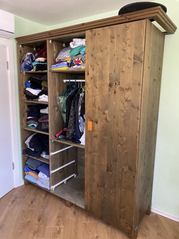 ארון בגדים, עץ אורן מלא.מצב חדש לגמרי.3 דלתותרוחב 180, עומק 60, גובה 210 ארון בגדים