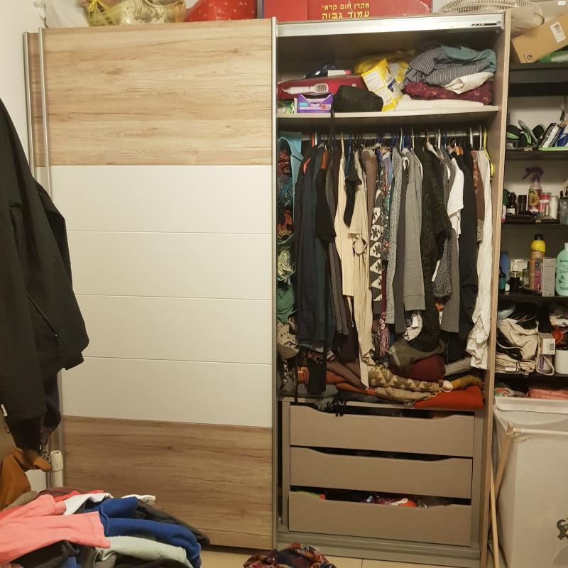 ארון בגדים של שמרת הזורע. 2 דלתות הזזה. רוחב 180גובה 210עומק 60צד אחד -תלייה, מדף עליון ו 3 מגירותצד שני- מדפיםהיה בשימוש 3 שנים. נמכר עקב מעבר דירה ארון בגדים דלתות הזזה