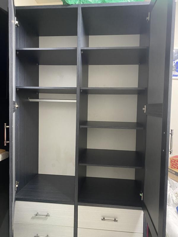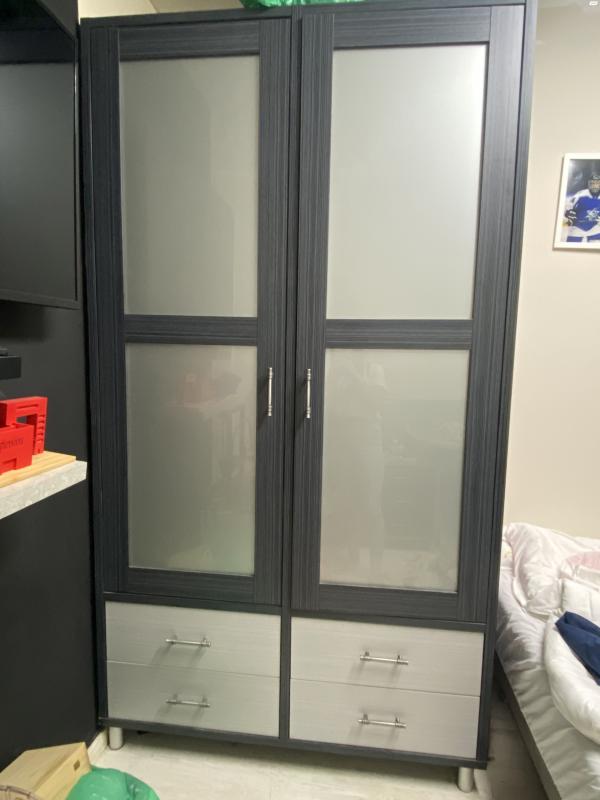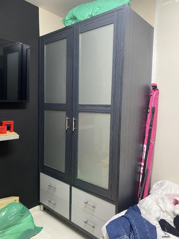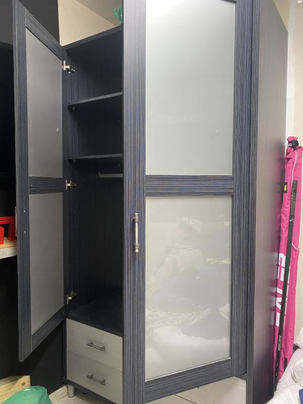 ארון בגדים 2דלתות גדול עם הרבה מקום על הדלתות יש זכוכית חלבית צד אחד מדפים והצד השני מדפים וטלייה בנוסף יש 4 מגירות גדולות הארון שמור וחדש ארון בגדים 2דלתות