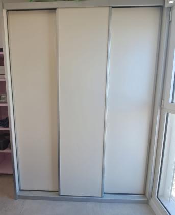 ארון בצבע- לבן שמנת בעל 3 דלתות הזזה, מסגרת אפורכסף. עיצוב מודרני. מדפים ותליה, במצב מצוין. כבן שנה מ'ארונות הראל'. 180 רוחב, גובה 2.40, עומק 60 ארון דלתות הזזה -ארונות הראל