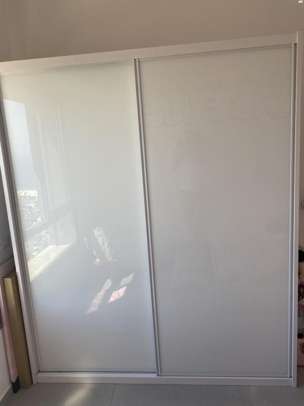 ארון הזזה בעיצוב ותכנון אישי- עם פלטות זכוכית חלבית, חדש לחלוטין, טריקה שקטה, שתי מגירות נעליים, חלןקה של מדפים נשלפים, מגירות לאחסון מרבי, תלייה רחבה ונוחה. ארון מושלם ופרקטי! חדש לחלוטין ללא כל שריטות או פגמים! מידות: 1.80*2.40 ארון הזזה מושלם זכוכית חלבית