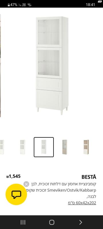 ארון לבן כולל וטירינה בחלק העליון , חלק תחתון מדפים . נקנה לפני חצי שנה, חדש חדש, במצב מעולה . מידות : גובה 2 מטר, רוחב 42 סמ , עומק 60 . לא נדרש לפרק יורד במעלית גדולה שקיימת. חדש עולה 1600 , המחיר סופי ארון כולל ויטרינת זכוכית