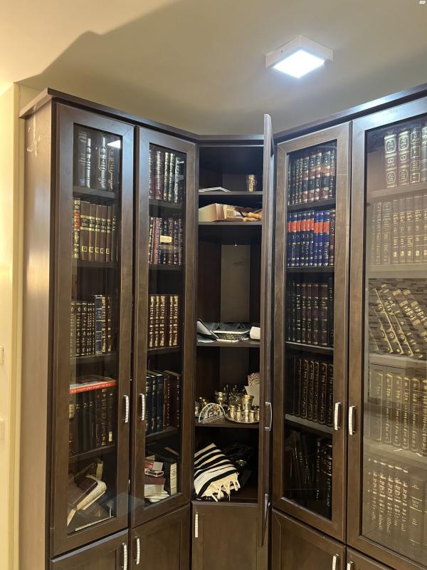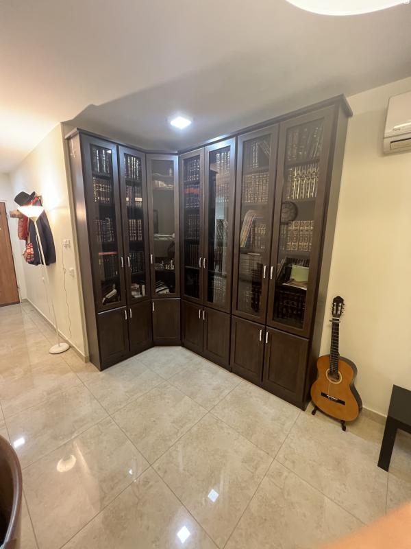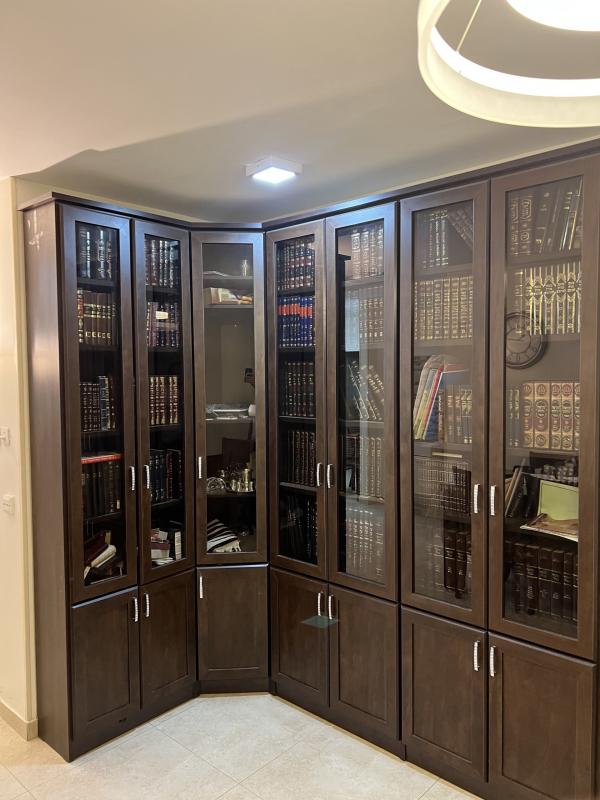 ארון ספרים עם זוית פינתית, 6 דלתות זכוכית + ארון זוית עם דלת.וארונות תחתית.מצב מעולה!מדפים חזקים ולא מתעגלים.נראה כחדש.-עלה 7000 שח…- ספרייה פינתית לסלון