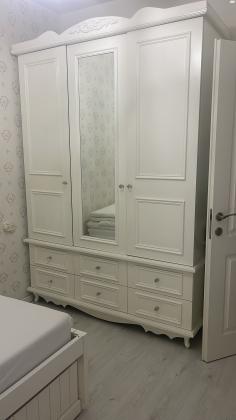 ארון עץ בסגנון פרובנס בצבע לבן חדש! נקנה לפני שנה בהזמנה אישית מ גודל 2.24/150גובה,תאים גדולים ומרווחים, 6 מגירות עומק 45 מחיר מקור- 6000 ארון פרובנס כמו חדש!!!!