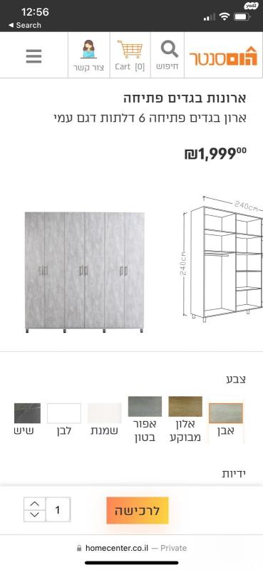 למכירהארון בגדים פתיחה 6 דלתות.נרכש בהום סנטר.240X240נמכר עקב מעבר דירה1200₪לא כולל פירוק ושליחה.איסוף מבת ים ארון בגדים 6 דלתות