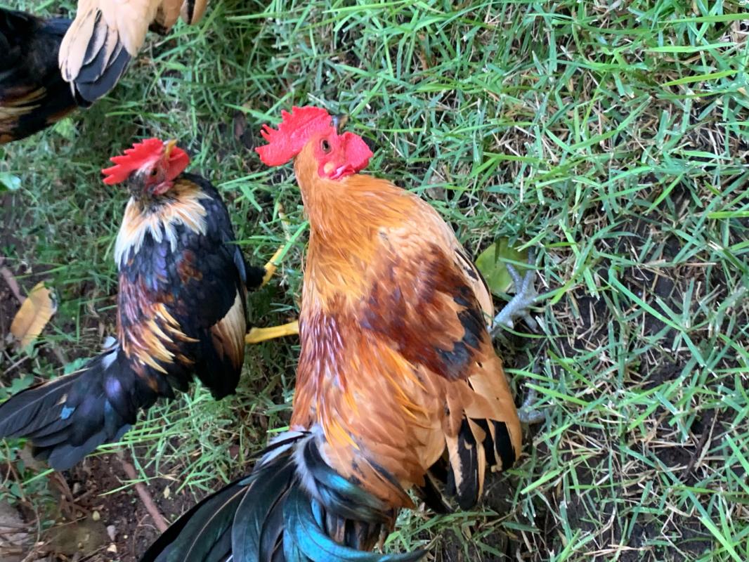 תרנגולות ערבי ננסי לבית מבוית. זכר ונקבה או אפרוחים