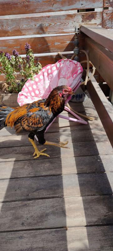 תרנגול תאילנדי זכר יפה וענק בגיל חצי שנה, שקט