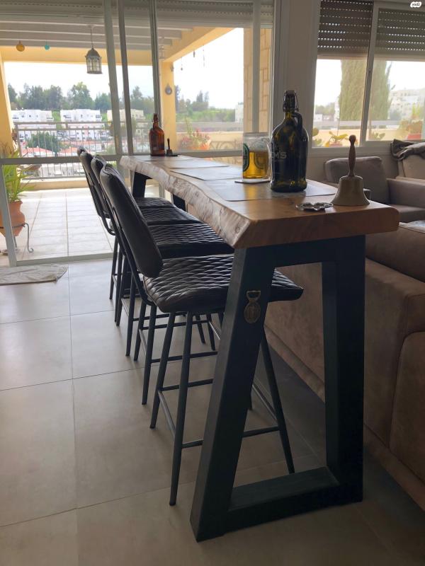 בר מעץ מלאאורך 2.40עומק 40 ס״מגובה 91 ס״מ4 כסאות מסתובבים בר מעץ מלא וכסאות