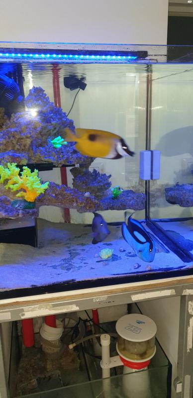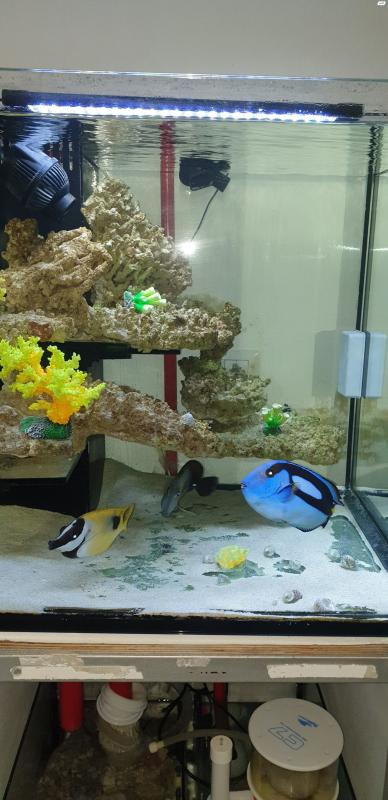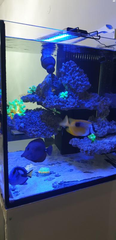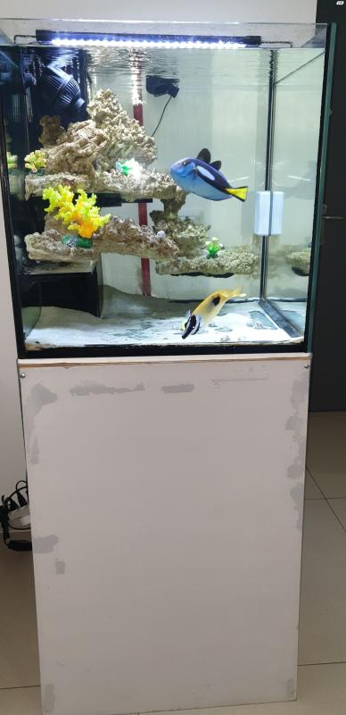 למכירה אקווריום 60×60×60 כולל צנרת סאמפ תחתון משאבת העלאה וחימום לא כולל דגים ופורק כרגע עובד כבר צפוף לדגים