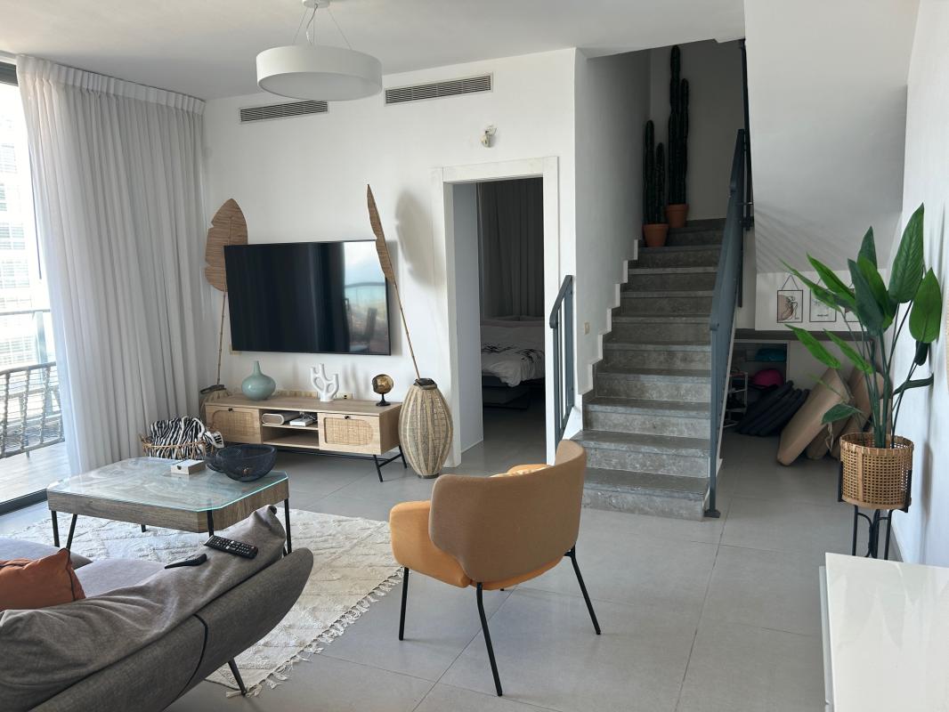 נכס 2719 - פנטהאוס דופלקס , 4 חדרים כ110 מ"ר , 3 מקלחות ושרותים. 2 חדרים מאסטר וממ"ד גדול. בקומת הסלון יש מרפסת כ14 מ"ר ובקומה העליונה יש מרפסת גג ענקית כ60 מ"ר. נוף מקסים לים.הדירה בבניין יחסית חדש. 1 חניה .הדירה מגיעה עם וילונות מאפילים ודקורטיבים, ארון בממ"ד.בשים לב, ממול לדירה זו יש בנייה.