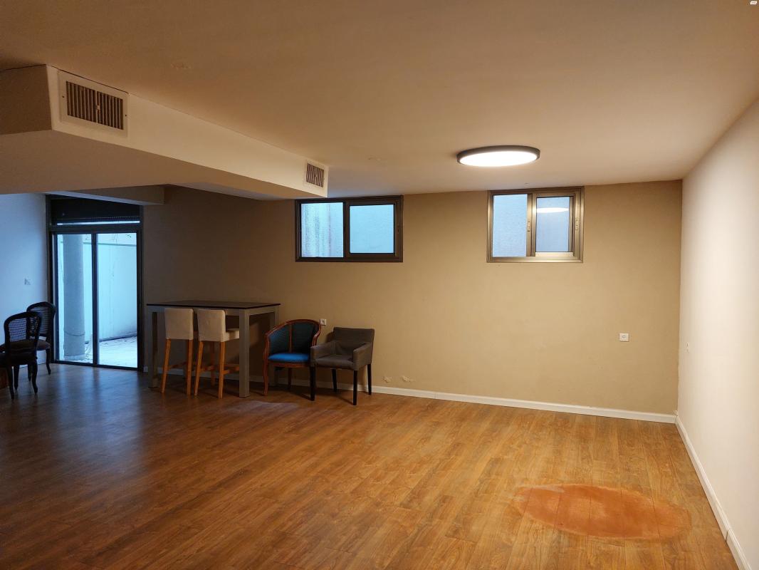 מרתף בגודל של 100 מר עם מרפסת אנגלית 2 שירותים וחדר שינה פלוס חדר אמבטיה אופציה לחללי עבודה / מגורים במחיר של 6500 שח