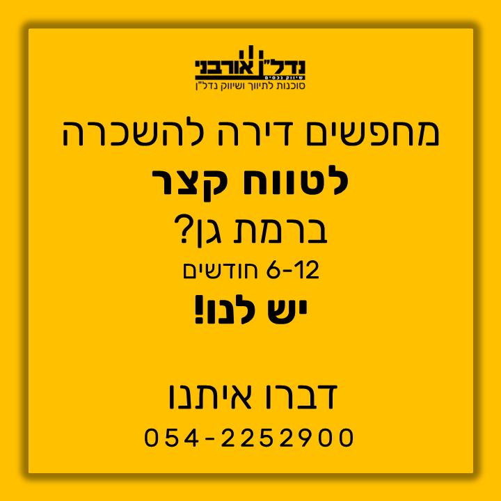 להשכרה דירות 4 חדרים לטווח קצר בין 6-12 חודשיםבשכונת נגבה ברמת גןלכניסה מיידית
