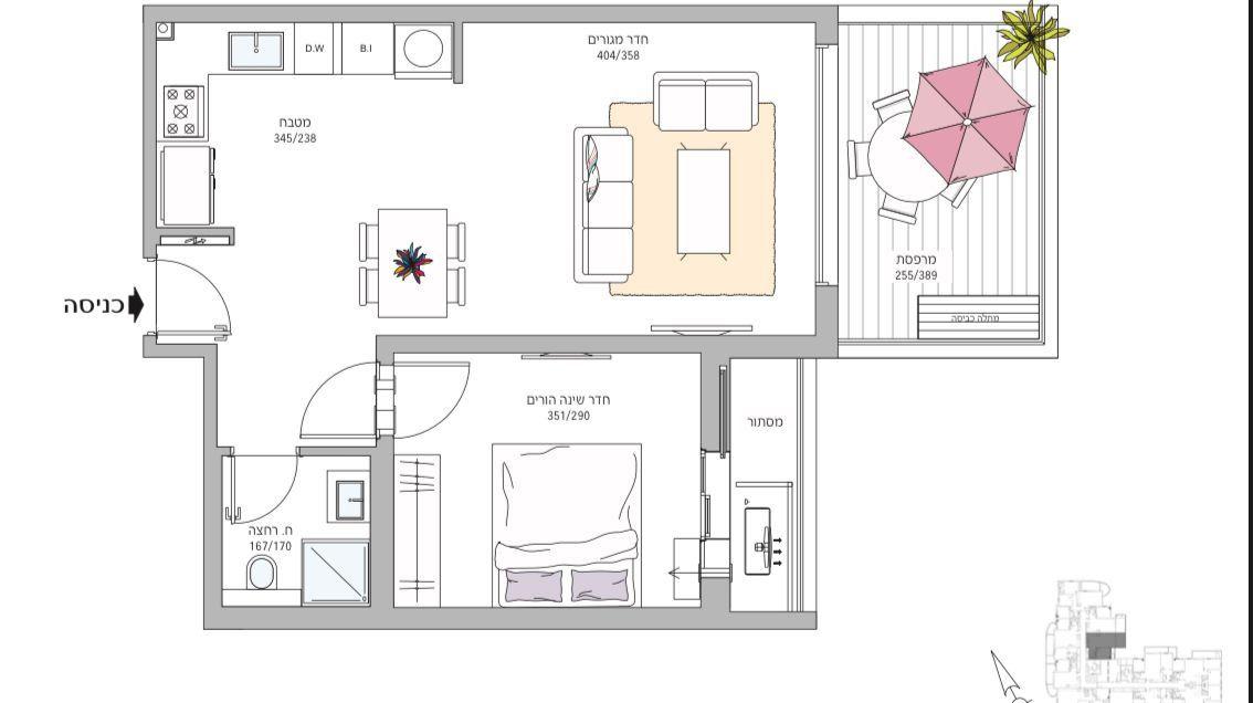בבניין חדש דירת 2 חדרים משופצת חדשה , מפנקת ונעימה עם מרפסת שמש עם נוף פתוח ,חניה ומחסן בטאבו