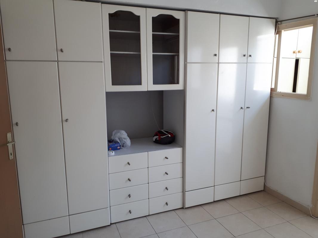 בדירה יש ארון קיר, שולחן מטבח תנור ומזגן.