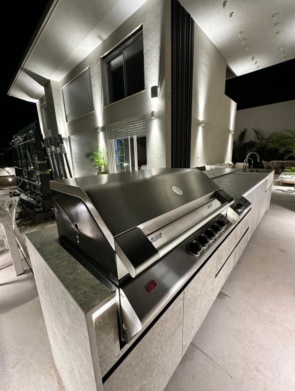 מטבח חוץ: מטבח חיצוני נוסף עם משטח שיש באורך 5.5 מטר - אידיאלי לאירוח מול הבריכה.
