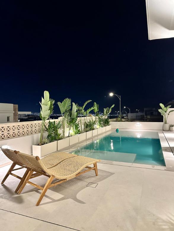בריכת שחייה: בריכת בטון גדולה ומפנקת בגודל 3.5 מטר על 10 מטר.